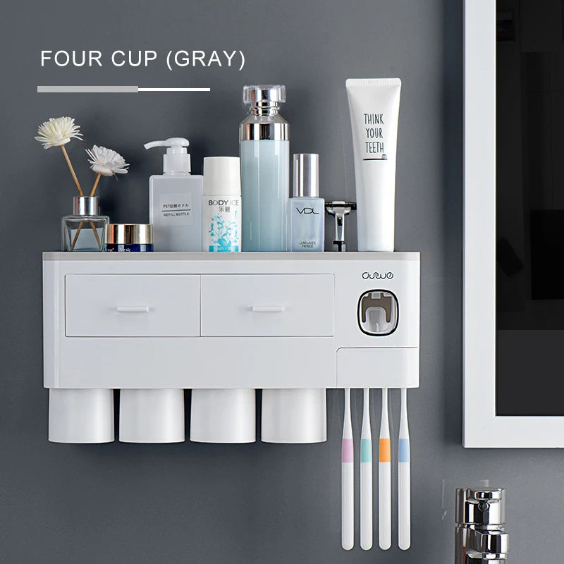 Bathroom Accessories Set Magnetic Adsorption Toothbrush Holder Automatic Toothpaste Dispenser with Cup Wall Mount Storage Rack