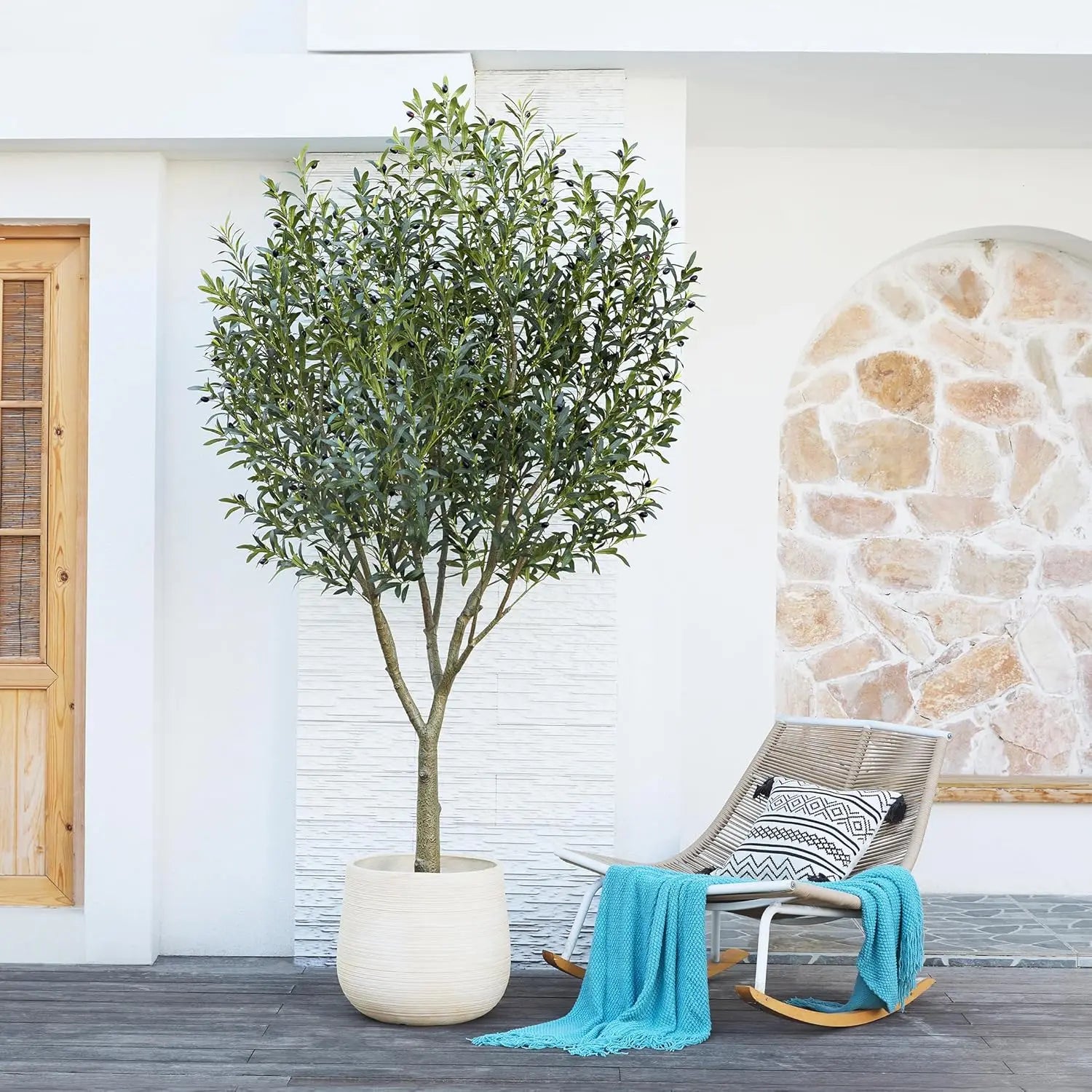 Outdoor Potted Faux Plant with UV Resistant Artificial Olive Tree 8FT - Large Fake Olive Tree Indoor with 4028 Silk Leaves